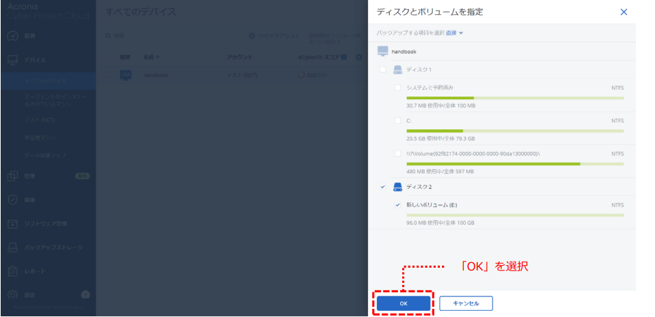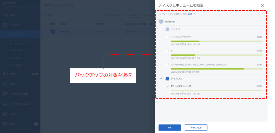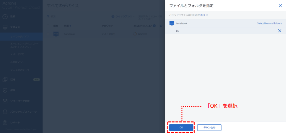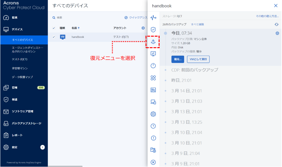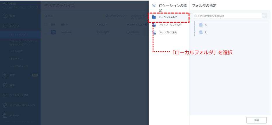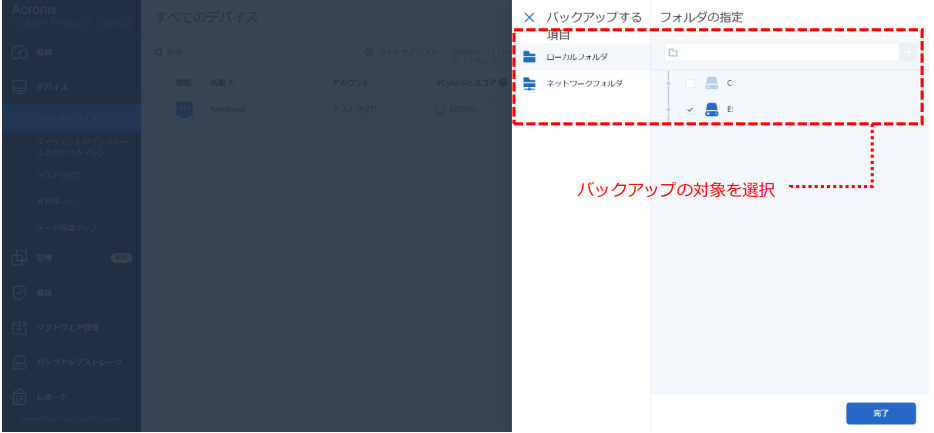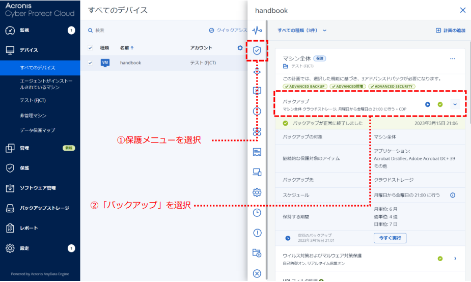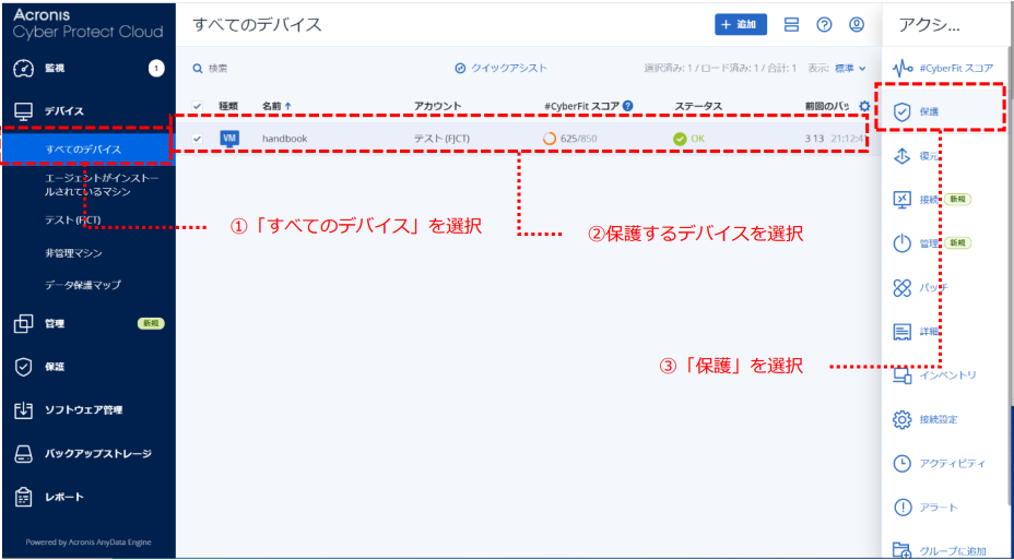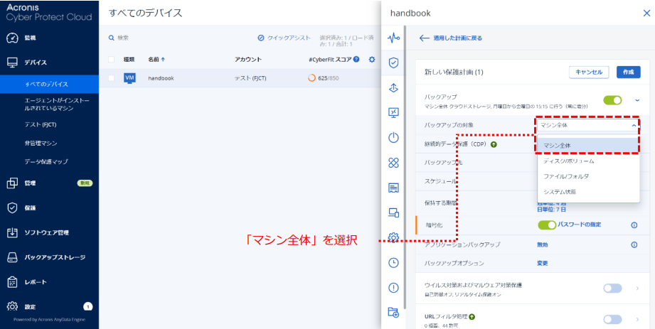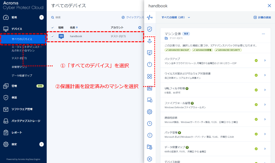 1. 「すべてのデバイス」から、保護計画を設定済みのマシンを選択してください。