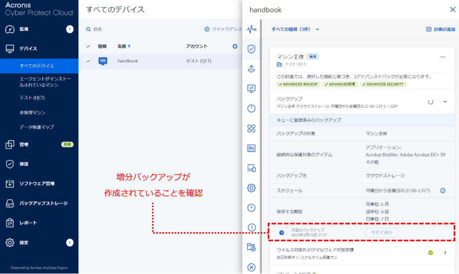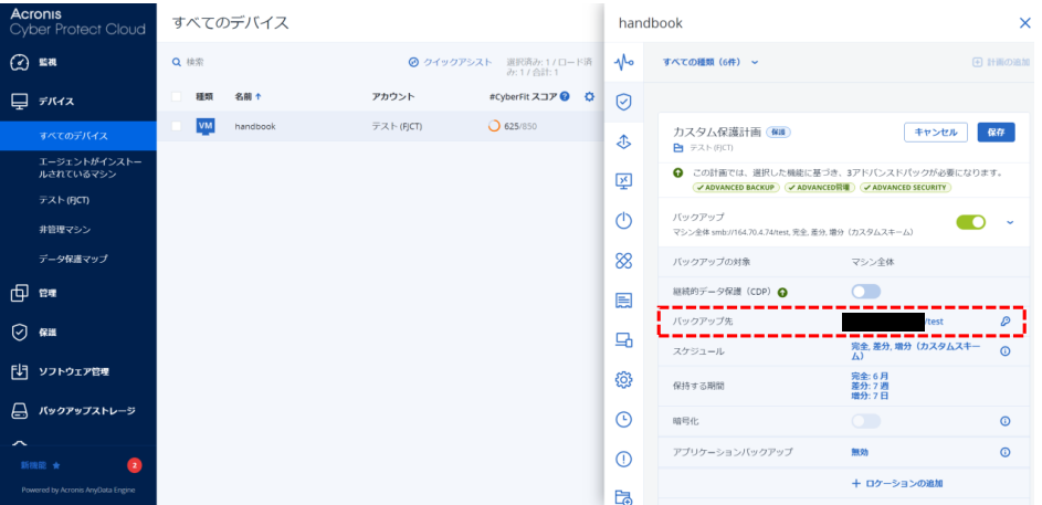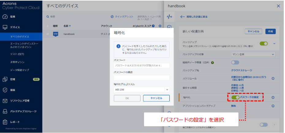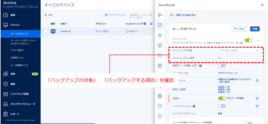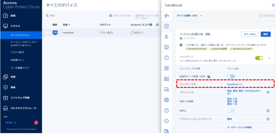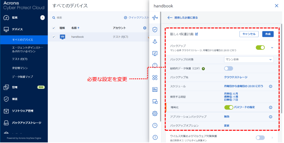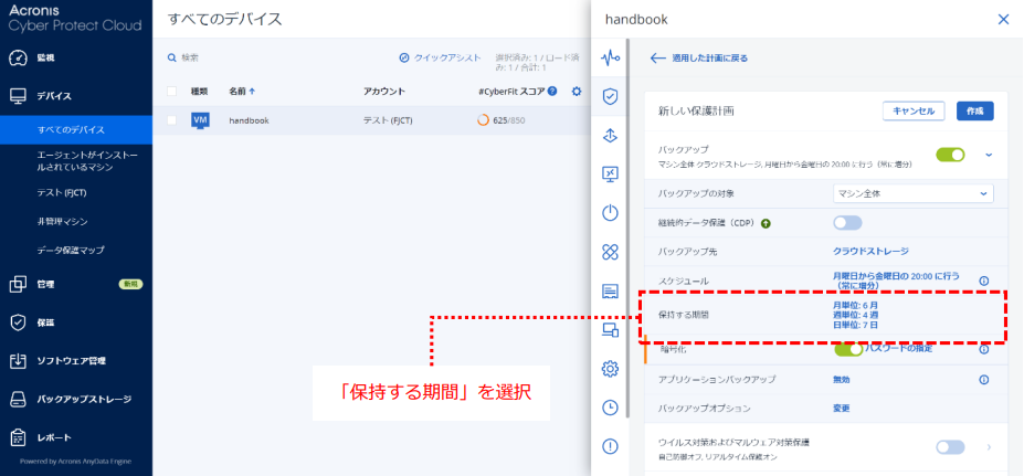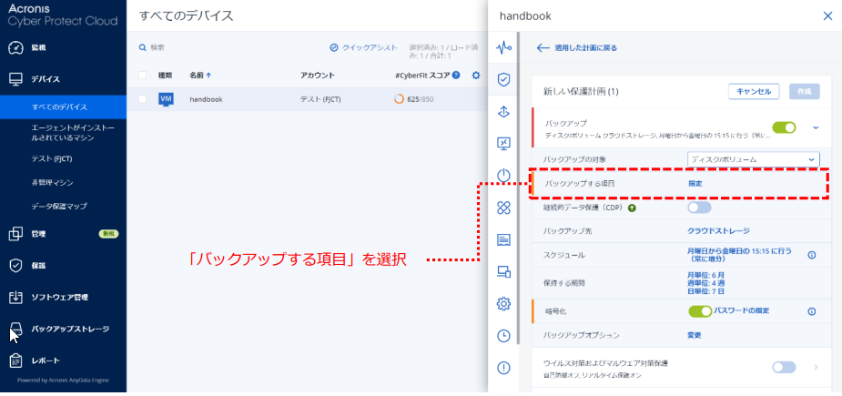 詳細はAcronis マニュアル 保護計画とモジュール より保護計画の作成 を参照してください。