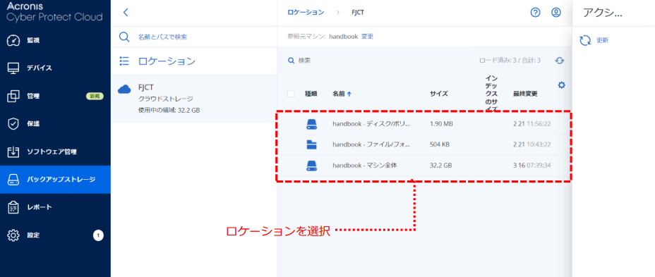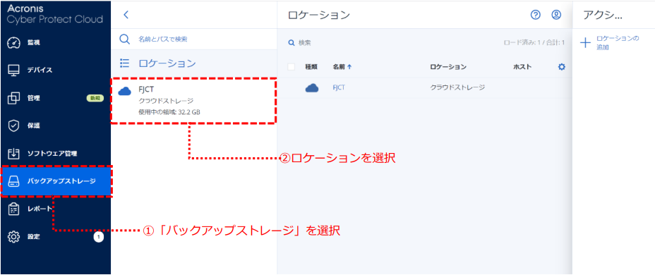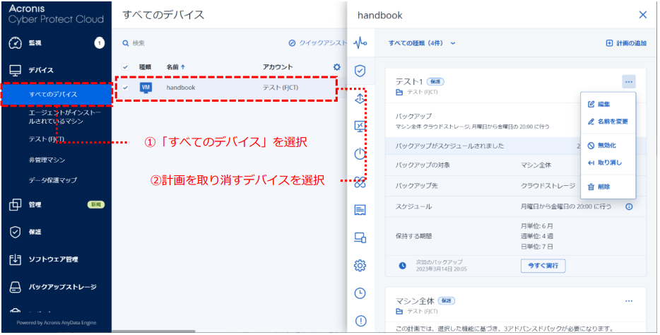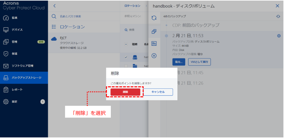 詳細はAcronis Cyber Protect:クラウドストレージからバックアップを削除する方法 を参照してください。