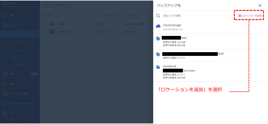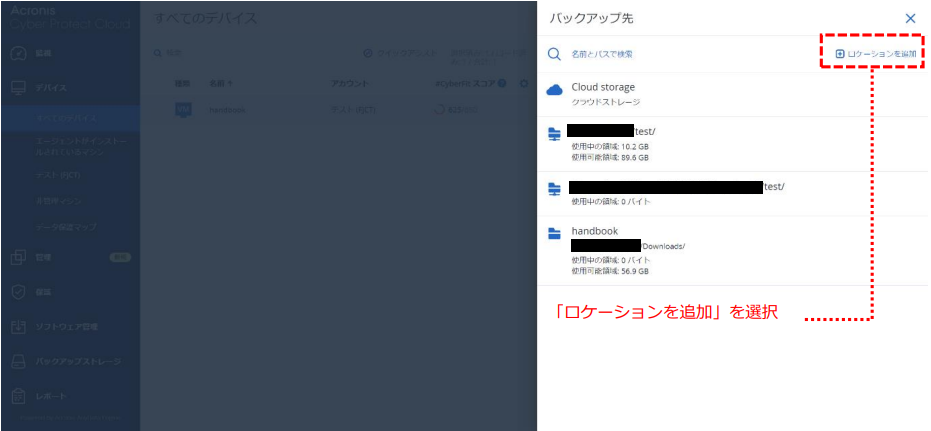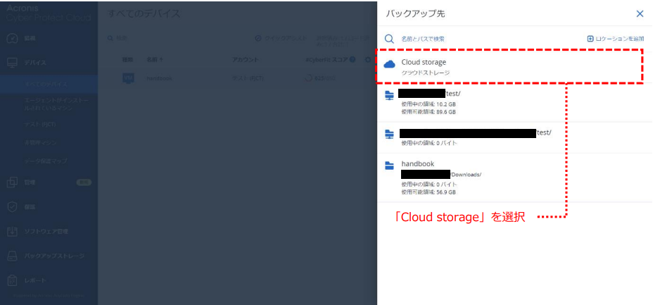 1. 「バックアップストレージ」から、バックアップを削除するロケーションを選択してください。