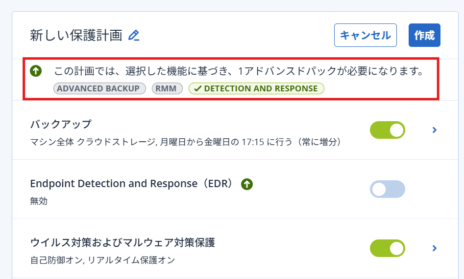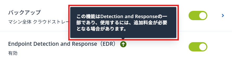 - 例:EDR(エンドポイントの検知と対応)のオプションが必要な場合の表示