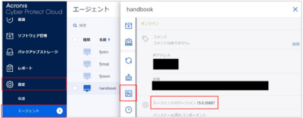 エージェントのバージョンを確認し、「12.5.21670」より前のバージョンであれば、バックアップ/セキュリティ>ユーザーガイド>導入を参考に最新版を上書きインストールしてください。