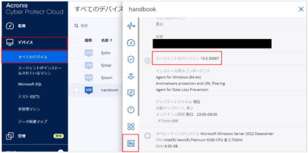 Failed to update the agent The automatic update of the agent installed on 'handbook' to version '15.0.1.35320 15.0.35320' has failed. The system will automatically retry the updatehandbook にはお客様のデバイス名が入ります。