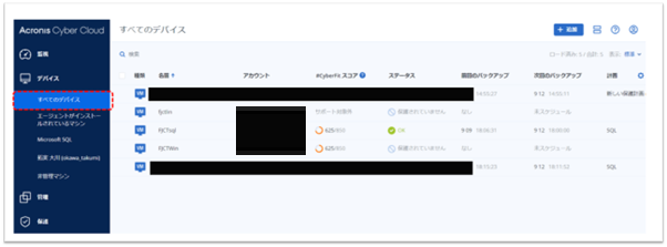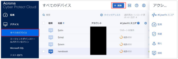 - サービスを利用する際の注意事項は、クラウド技術仕様/制限値(バックアップ/セキュリティサービス(Acronis Cyber Protect Cloud)) ならびにFAQ(よくあるご質問) を参照してください。