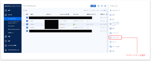 - 右ペインの [アクティビティ] をクリック