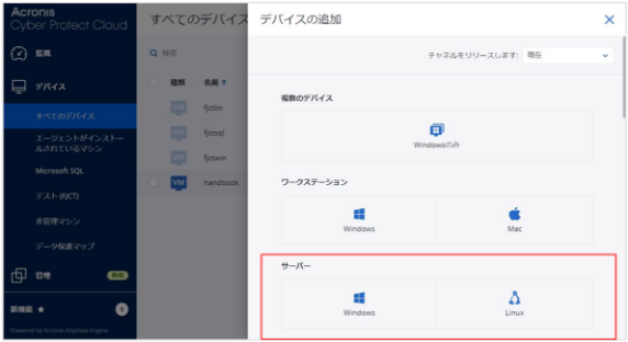 [デバイスの追加] 画面の [サーバー] から [Windows] or [Linux] を選択しダウンロードする。