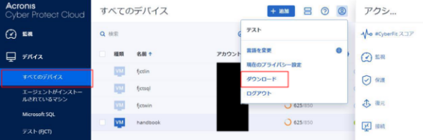 詳細な情報は、Acronis Cyber Protect Cloud: Collecting system informationを参照してください。- 管理コンソールにログイン