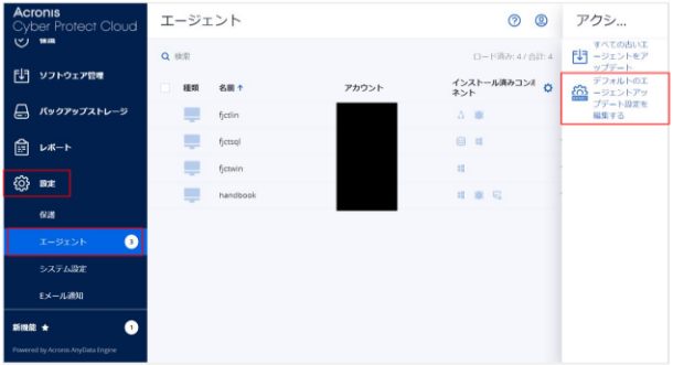 - 設定>エージェント>デフォルトのエージェントアップデート設定を編集する