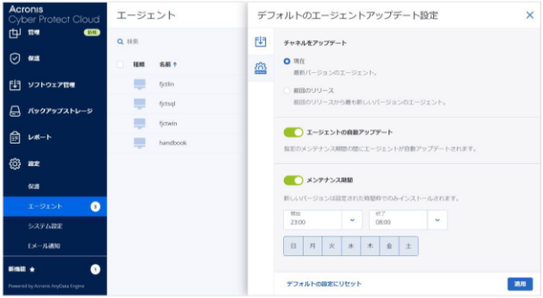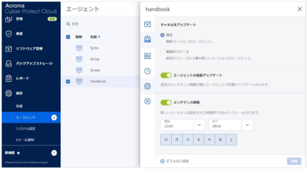 エージェントの自動アップデートスケジュールは、バックアップ対象サーバー毎に変更できます。