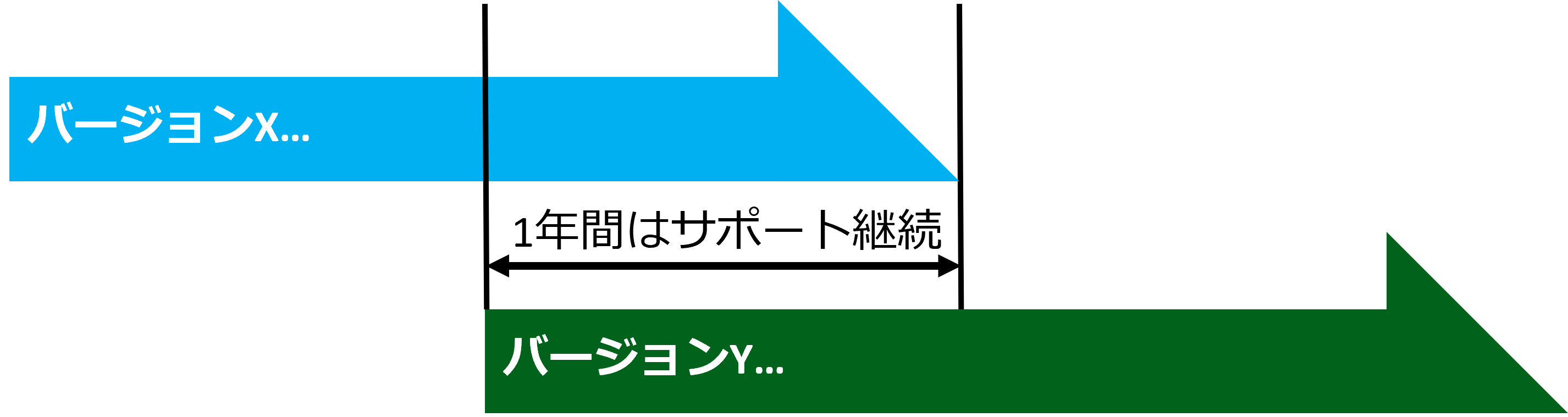原則、次のメジャーバージョンリリース日から1年以上の期間を当該バージョンのサポート期間とします(※2)。